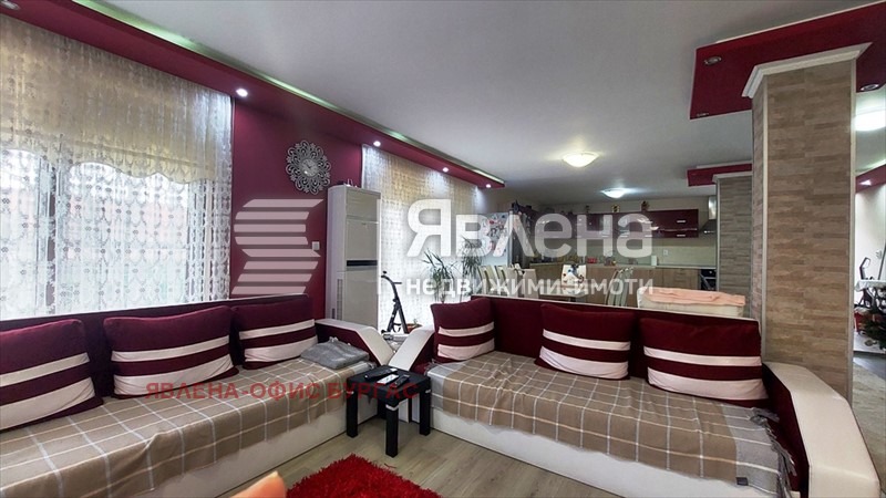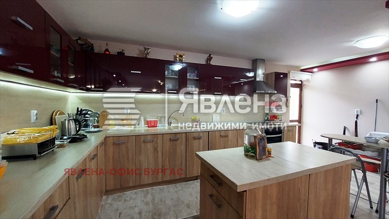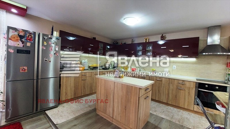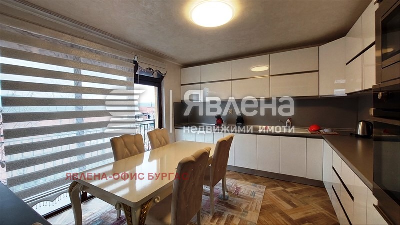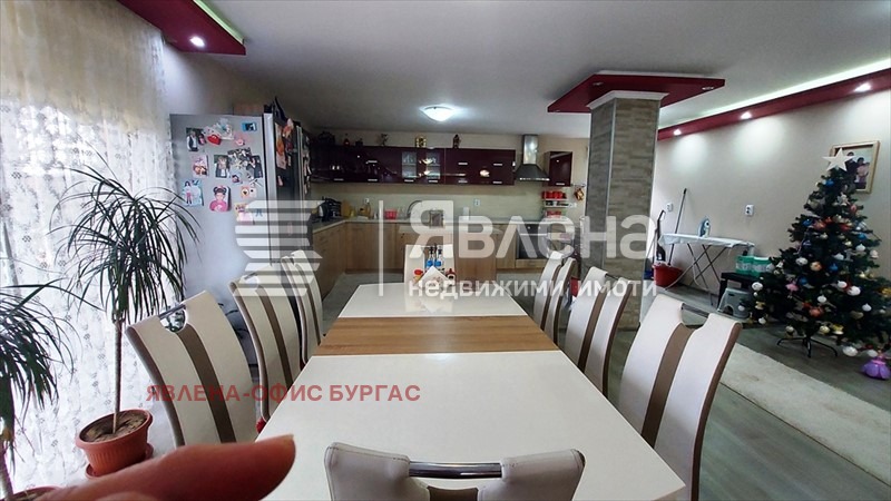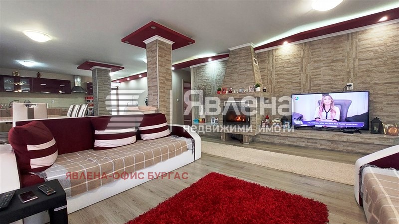 Явлена представя на вашето вниманив луксозна двуетажна къща. Намира се на асфалтирана улица ситуирана в самостоятелен парцел от 600 кв.м. Къщата е с РЗП-330 кв.м., като всеки етаж е със самостоятелен вход и може да се ползва поотделно. Разпределение: 1-ви етаж -160 кв.м. състоящ се от; антре, особено голям хол с камина, трапезария, голяма кухня, WC за гости, две просторни спални помещения всяко със санитарен възел. 2-ри етаж - 170 кв.м. състоящ се от входно антре(салон), голям хол с трапезария и кухня, дрешник, две просторни спални помещения всяко със санитарен възел и тераса. Къщата се откроява с луксозния си интериор и мебели и електроуреди висок клас! Отоплението на първият етаж е с камина, във всички стаи има климатици. Имот за истински ценители на лукса само на 25 км. от морето. Прекрасно разпределение - големи и просторни стаи! Заповядайте да разгледате един топъл и уютен дом!