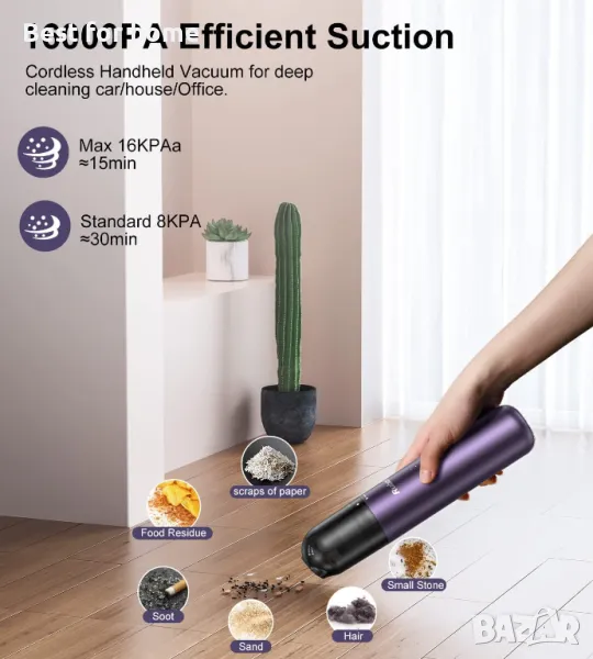 RUBOT автомобилна безжична прахосмукачка Мощна, 16000PA силно засмукваща преносима ръчна безжична прахосмукачка с 25-30 минути дълго време на работа, акумулаторна, преносима прахосмукачка за дома/колата, мини прахосмукачка, лилава(P12).