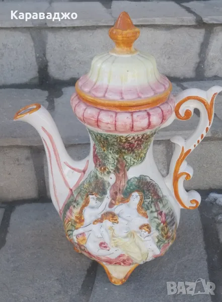 Порцеланова кана с капак в стил каподимонте,висока 41/28см.Перфектна!