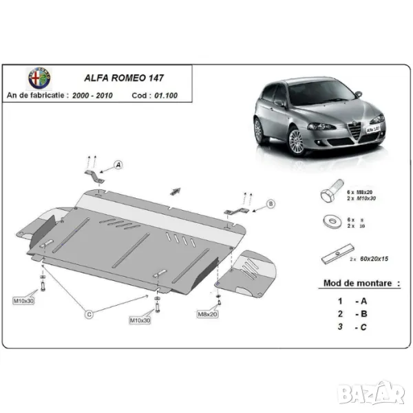 Метална кора под двигател ALFA ROMEO 147 → Обява 49442635