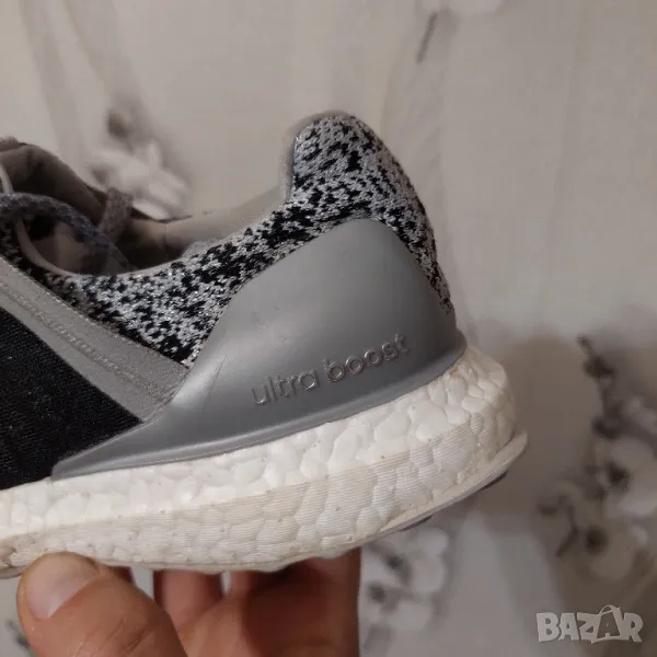 Свръхлеки маратонки от високотехнологичен плат, детайлирани с контрастиращи гумени апликации и технология Boost, за да осигурят максимален комфорт и меко усещане, лого на езика, гумена подметка.