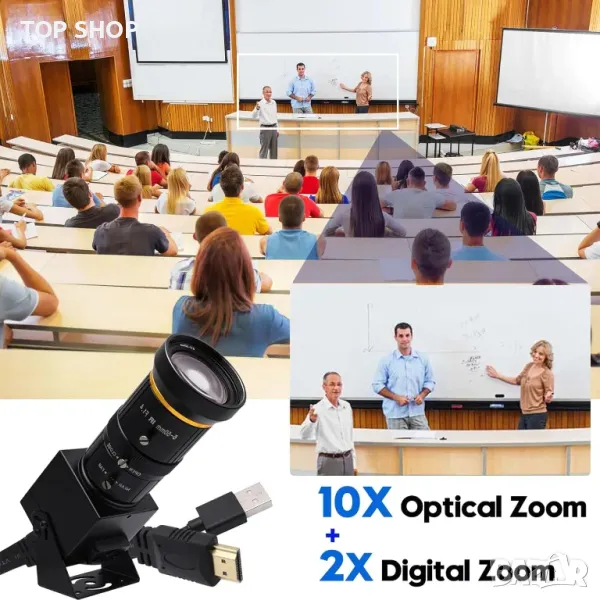 Svpro HDMI USB камера 4K 60fps USB3.0, 5-50 мм телефото обектив, 10х