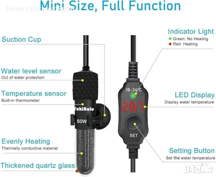 Малък потопяем нагревател за аквариум YukiHalu, мини нагревател за аквариум