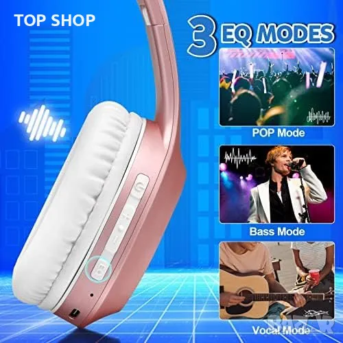 Bluetooth слушалки Rydohi: Над ухото, сгъваеми, в розово злато
