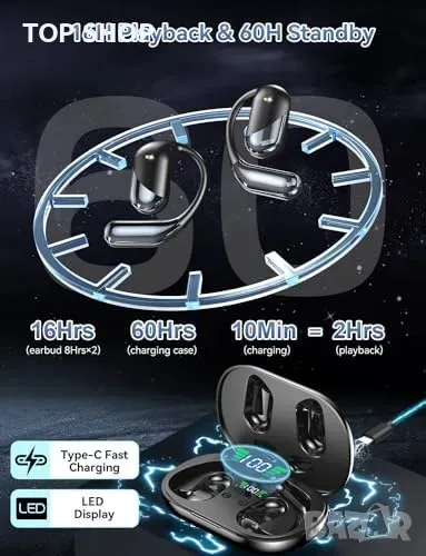 Нови Andygo отворени слушалки за бягане, LED дисплей, 60 ч възпроизвеждане