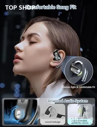 Безопасност и комфорт: Отворен дизайн, който позволява на ушите ви да останат свободни за околния звук.