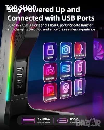 Поставка за гейминг слушалки IFYOO с RGB осветление, 2 USB и 1 Type-C порта.