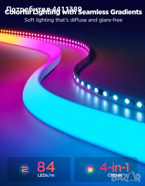 Открийте новата Neon led лента. Това е като гъвкава струна, която ви дава висококачествена RGBIC светлина. С издръжлив силиконов екстериор и ярка дифузна светлина, която може да се огъва около ъглите и в различни форми.