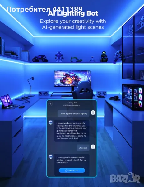 Лентата има 64 режима на динамична сцена, от които да избирате. Можете да настроите таймер за автоматично включване/изключване според вашите нужди, създавайки приятно и полезно осветление.