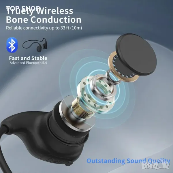 WOO M7 Слушалки с отворено ухо с костна проводимост, микрофон, бързо зареждане, 12 часа, IP55