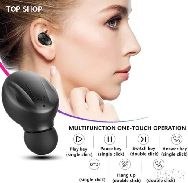 Слушалки Xawy, 5.0 безжични слушалки в ухото, стерео звук, микрофон, за iOS, Android