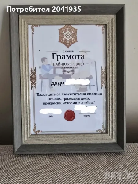 Грамота най-добра баба/дядо, снимка 1 - Други - 49445246 Грамота най-добра баба/дядо, снимка 2 - Други - 49445246 1/2
