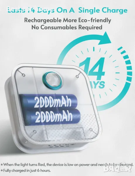 БАТЕРИЯ, ЗАРЕДЕНА от USB & НЕ СЕ ИЗИСКВАТ КОНСУМАТИВИ: елиминаторът на котешка миризма DownyPaws не изисква скъпи устройства за смяна. Нашият дезодорант за котешка тоалетна е изграден от 4000 mAh високоефективна литиева батерия и се зарежда от USB кабел (включен), след надстройката на програмата, 14 дни живот на батерията с едно зареждане, дезодорантът DownyPaws отнема 50% повече време в сравнение с други дезодоранти на пазара, така че не се налага да го зареждате често.