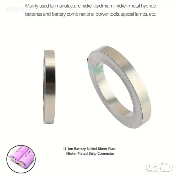 Тази никелирана плоска лента с размери 0,1 mm x 6 mm и дължина 10 метра е идеална за точково заваряване на 18650, 21700, 26650, 32650 и др. батерии и клетки.