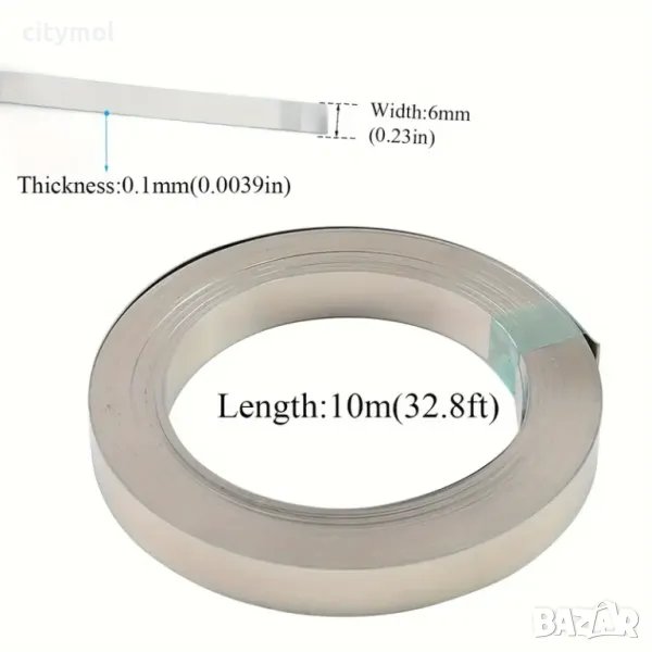 Никелова лента за акумулаторна точкова заварка 0.1 х 6 мм дължина 10м