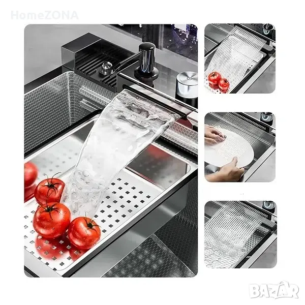 Мивка за кухня Spark 12, пиано бутони, двоен водопад, хром → Обява 49445687