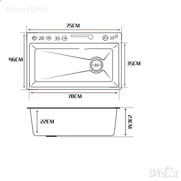 • Специална форма за оттичане на водата