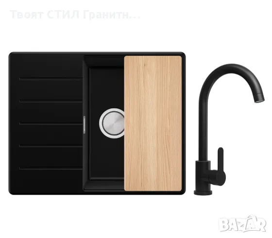 Черна кухненска мивка от гранит Копенхаген 620х500 + Смесител Top 45