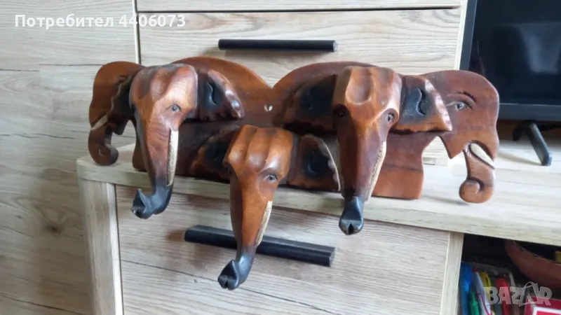 Продавам дървена закачалка слончета → Обява 49446198