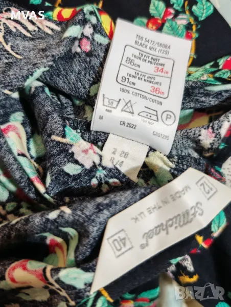 М размер, пише, че е за бюст 86 см и ханш 91 см, но реално не е тясна. За М е.