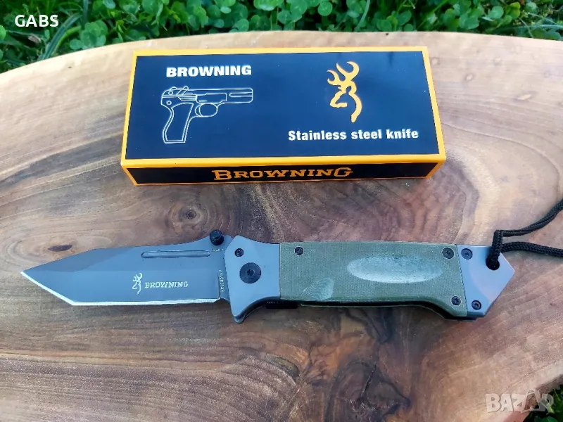 Сгъваем полуавтоматичен джобен нож Browning в два цвята-черен и зелен.Ножа има клипс за носене на колан или закачане за джоб.