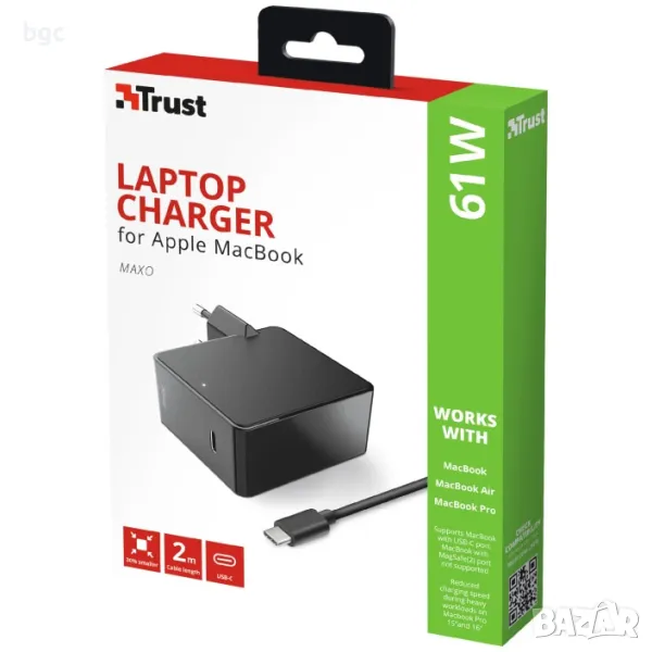Зарядно устройство за лаптоп Apple MacBook Trust Maxo, 61W USB-C, Съвместимост Apple MacBook
