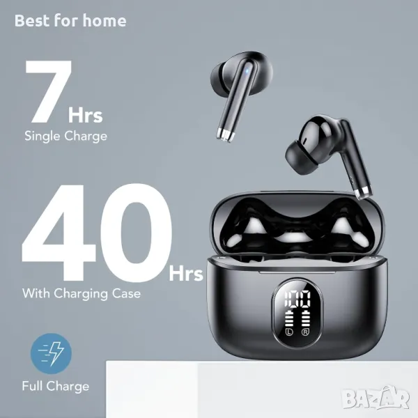 40 часа време за възпроизвеждане: Bluetooth слушалките осигуряват 6 часа време за възпроизвеждане с едно зареждане, което може да бъде удължено до 40 часа с кутията за зареждане. Зареждането на безжичните слушалки за 15 минути дава допълнителни 2 часа време за игра.