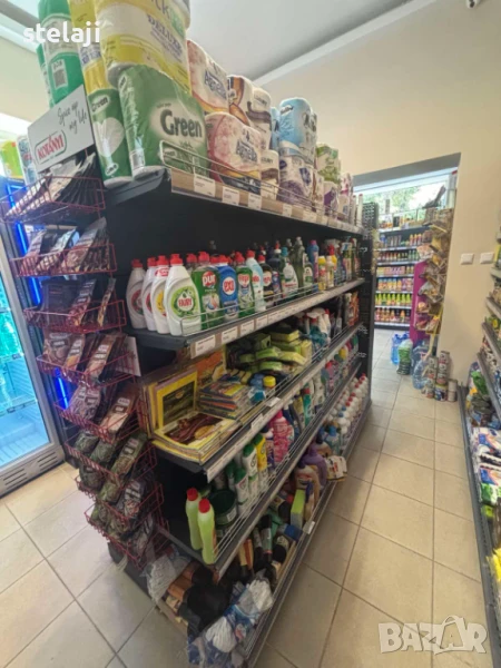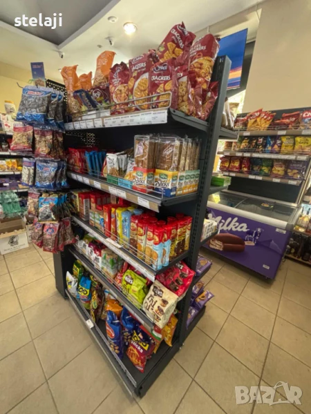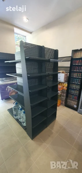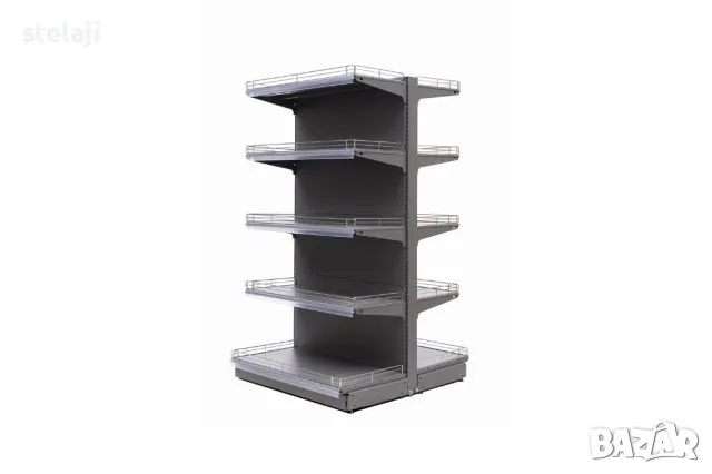 Островен стелаж за магазин с плътен или перфориран гръб.