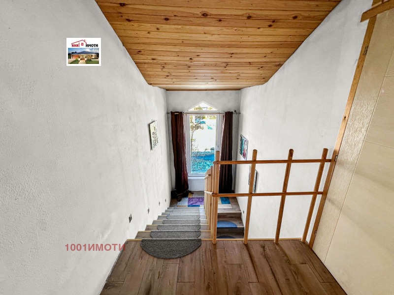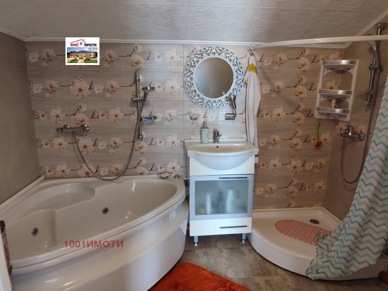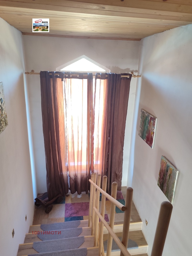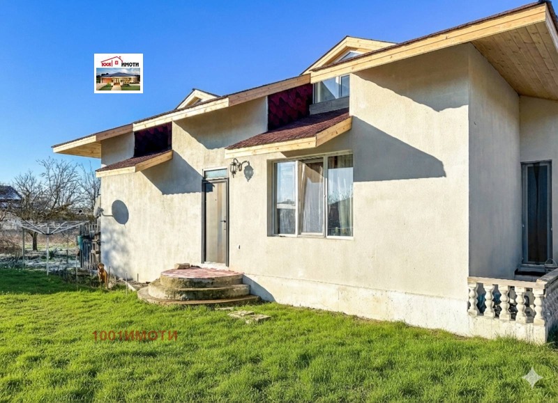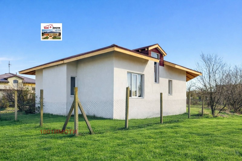 Къщата е ново строителство на два етажа с изолация и мазилка с двор 600кв.м , стопанска постройка и барбекю зона. На първия етаж има коридор, кухня с трапезария, тераса и балкон, хол с камина, две спални с индивидуални бани и тоалетни и стълбище за втория етаж. На втория етаж има гардеробна и две спални с бани с тоалетни. Пода е с ламинат и гранитогрес. Мястото е оградено с овошки и цветя.Продава се с обзавеждането. А5721