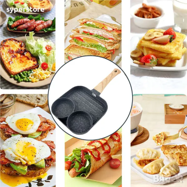 Тиган с 3 отделения Digital One SP01018, с незалепващо покритие, във формата на кръгове, за яйца , палачинки и др.