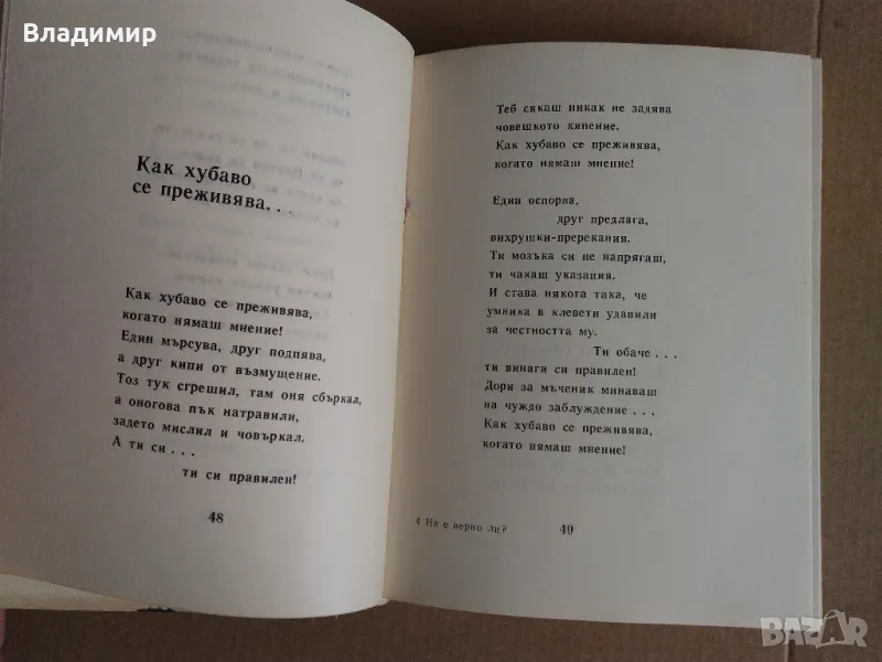 Продавам книгата на Христо Радевски "Не е верно ли?", Издателство "Български писател" 1966 г., твърди корици, джобен формат 14/11 см., 243 стр. в много добро състояние за годините си.