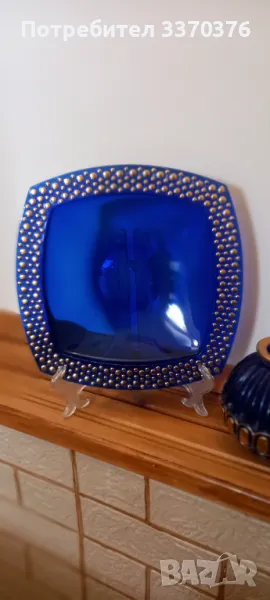 Ваза и плато-кобалтово синьо и златисто → Обява 49449041