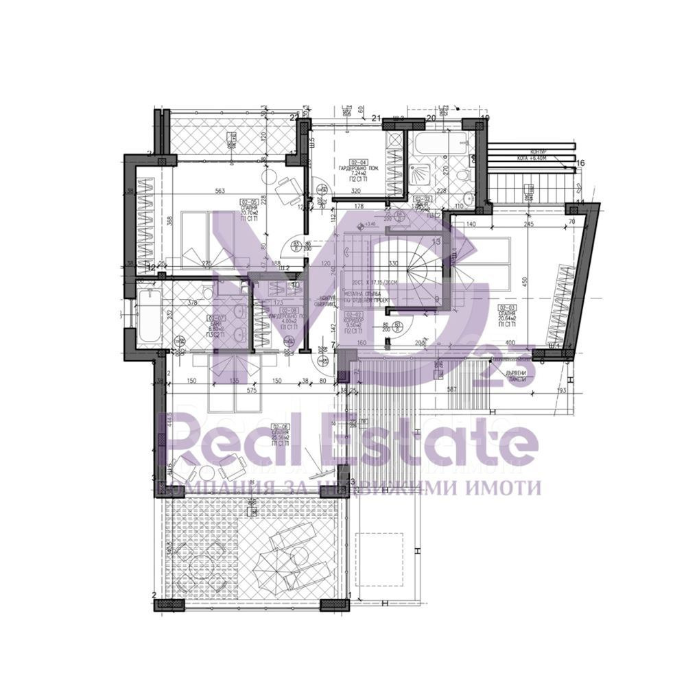 Представяме двуетажна къща разположена в полите на Родопите. Имота се намира в затворен комплекс от десет къщи, всяка със собствен двор и две паркоместа. Площта на къщата е 363 кв.м., съответно разпределени на три нива: Първи етаж с площ 137 кв.м. - предверие, просторен хол с трапезария и кухненски кът с излаз към дворна веранда, спалня и баня с тоалетна. Втори етаж с площ 148 кв.м.: перално помещение, баня с тоалетна, три спални, от които родителската е с излаз на просторна тераса, гардеробно и собствена баня с тоалетна. Подземно ниво (изба) 78,89 кв.м.: две помещения предвидени за склад, фитнес или машинно помещение. Къщата е с просторни стаи, с височина на таваните 3,40 кв.м. и предлага красива гледка към Родпите и град Пловдив.
