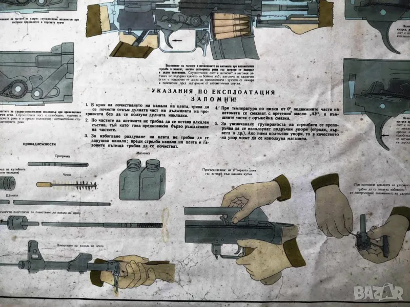 ТАБЛОТО Е ЦВЕТНО НА ЛИСТ ПОДЛЕПЕН НА ФАЗЕР С ИНСТРУКЦИЯ ЗА ЕКСПЛОАТАЦИЯ НА АВТОМАТ КАЛАШНИКОВ. ИМА ГОЛЕМИ РАЗМЕРИ 96/66СМ. АКО ИМАТЕ ВЪПРОСИ МИ ПИШЕТЕ СЪОБЩЕНИЕ.
