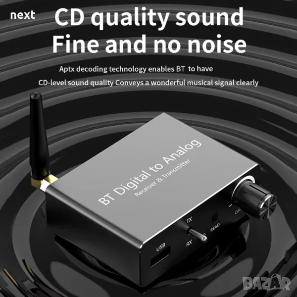 4. Стабилно предаване на сигнала: Вградената антена на адаптера за цифрово-аналогов аудио DAC конвертор осигурява стабилна и гладка връзка, поддържайки свързаност на дълги разстояния без прекъсване в открити среди, като същевременно доставя аудио без забавяне.