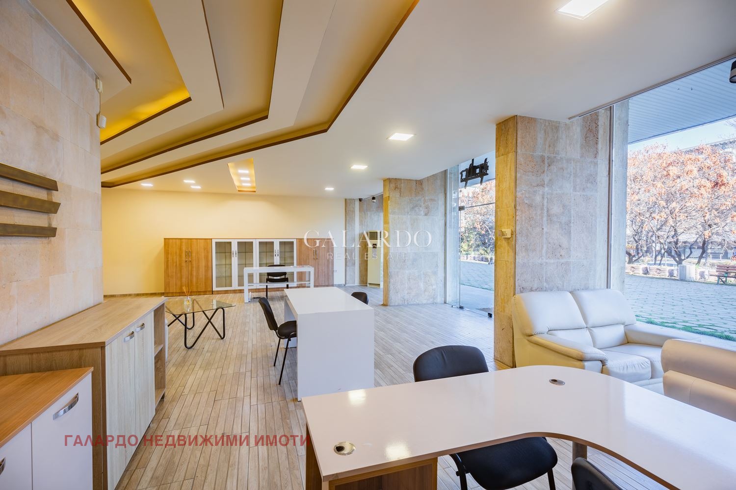 Galardo Real Estate предлага под наем търговско помещение Офис-Шоурум на централно място с лице към булевард Мария Луиза с обща площ 340 кв. Партер + Склад.