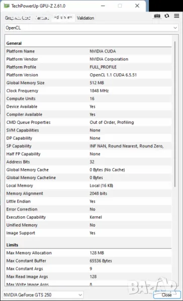 Chipset/GPU Model: NVidia GeForce GTS250/G92GTS