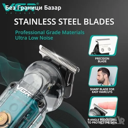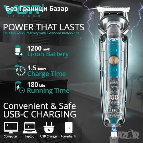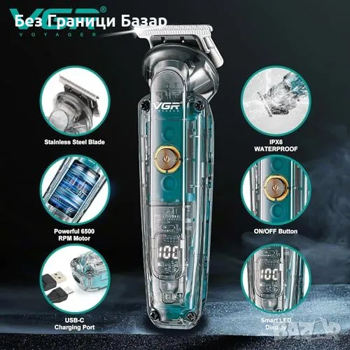 Нов Мъжки Тример за Брада, Мустаци и Нос VGR, USB-C, LED, 180 Мин, IPX6