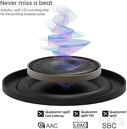 Висококачествена музика: Поддържа aptX HD, aptX LL, LDAC, AAC и SBC, с персонализирани 40mm динамични драйвери за потапящо аудио изживяване.