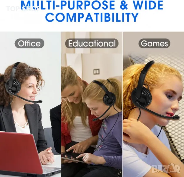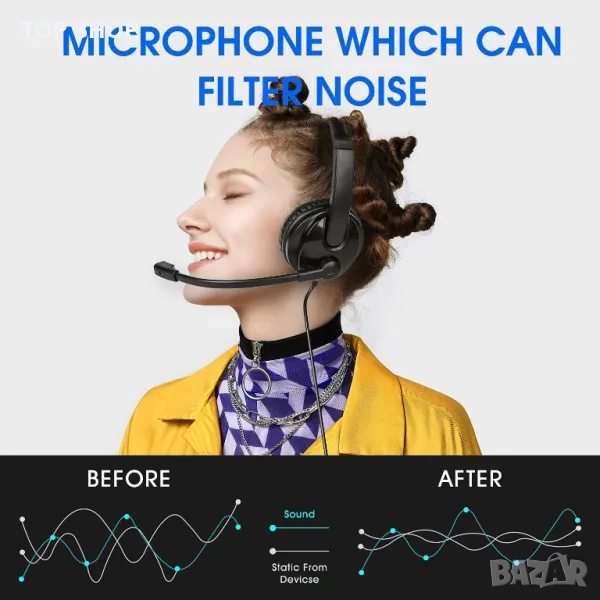 Нови USB слушалки с микрофон за офис, работа, бизнес с шумопотискане