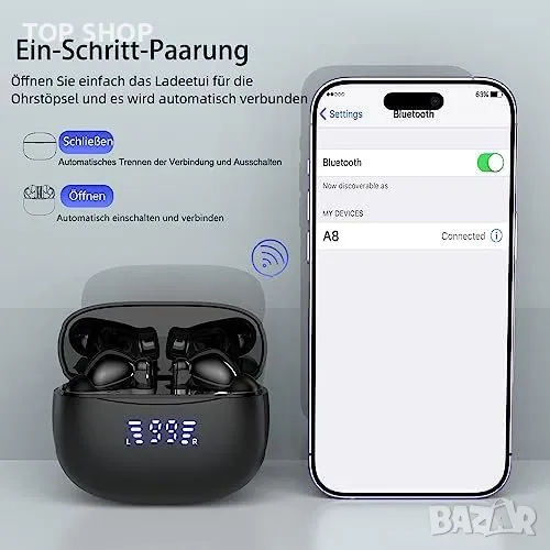 Нови Bluetooth 5.3 слушалки Водоустойчиви LED индикатор Earbuds