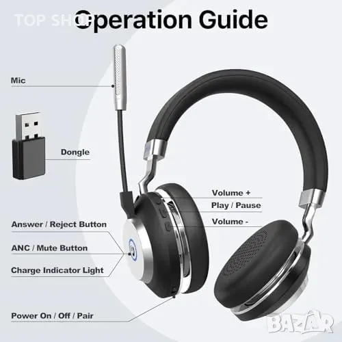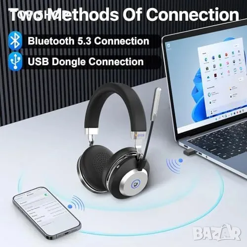 Професионални безжични слушалки с микрофон за работа, офис, Skype, Zoom и онлайн срещи