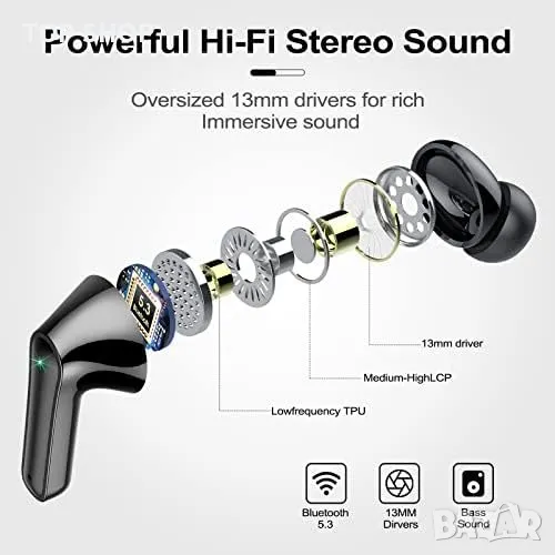 Мощен звук: 13mm динамични драйвери, технологии AAC/SBC/MSBC.