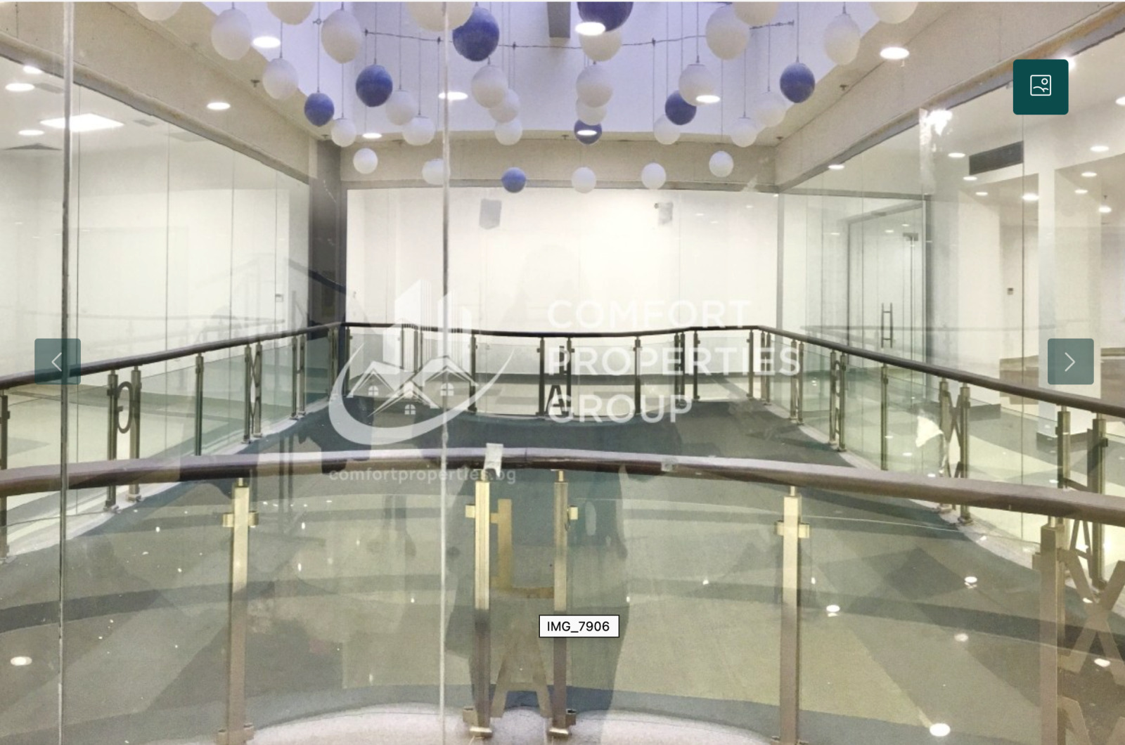 Разположен на кота +1/4,50 м на 1-ви етаж в търговската част на търговски център