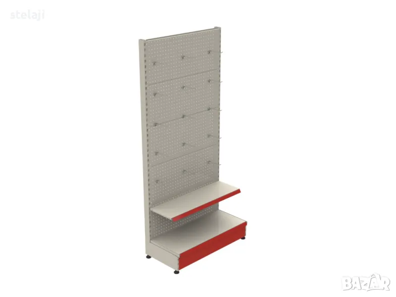 Крайстенен стелаж с перфориран гръб за закачане на куки и рафт