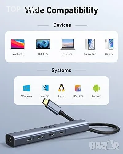 Съвместимост: Работи с всички устройства с USB-C порт, без нужда от допълнителни драйвери.