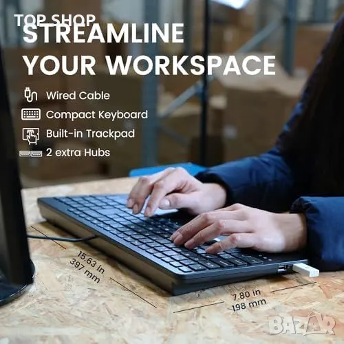 Нова Компактна Клавиатура с Тъчпад + USB Хъбове, Поддръжка Windows