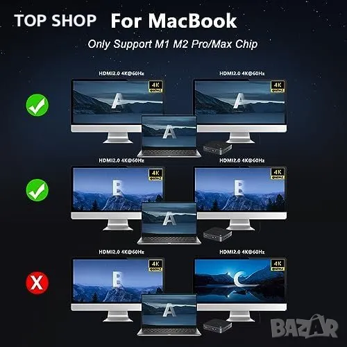 Нова 12 в 1 USB C докинг станция два монитора Windows MST Dock с 8K HDMI 2.1 Хъб → Обява 49451238