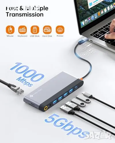 Нов Универсален USB C Хъб 14 в 1, 8K DP, 4K Dual HDMI, 100W PD Докинг Станция
