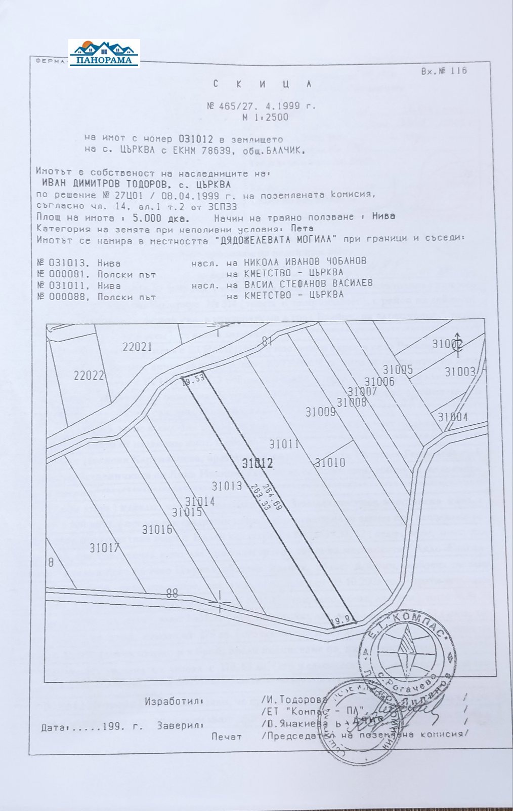 В землището на с.Църква. местност 'Дядожелевата могила' 5000 кв.м.